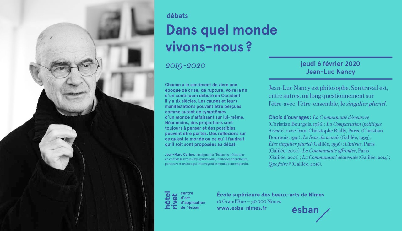 Rencontre avec Jean-Luc Nancy et Jean-Marc Cerino à l’ESBAN de Nîmes dans le cadre du cycle Dans quel monde vivons-nous ?