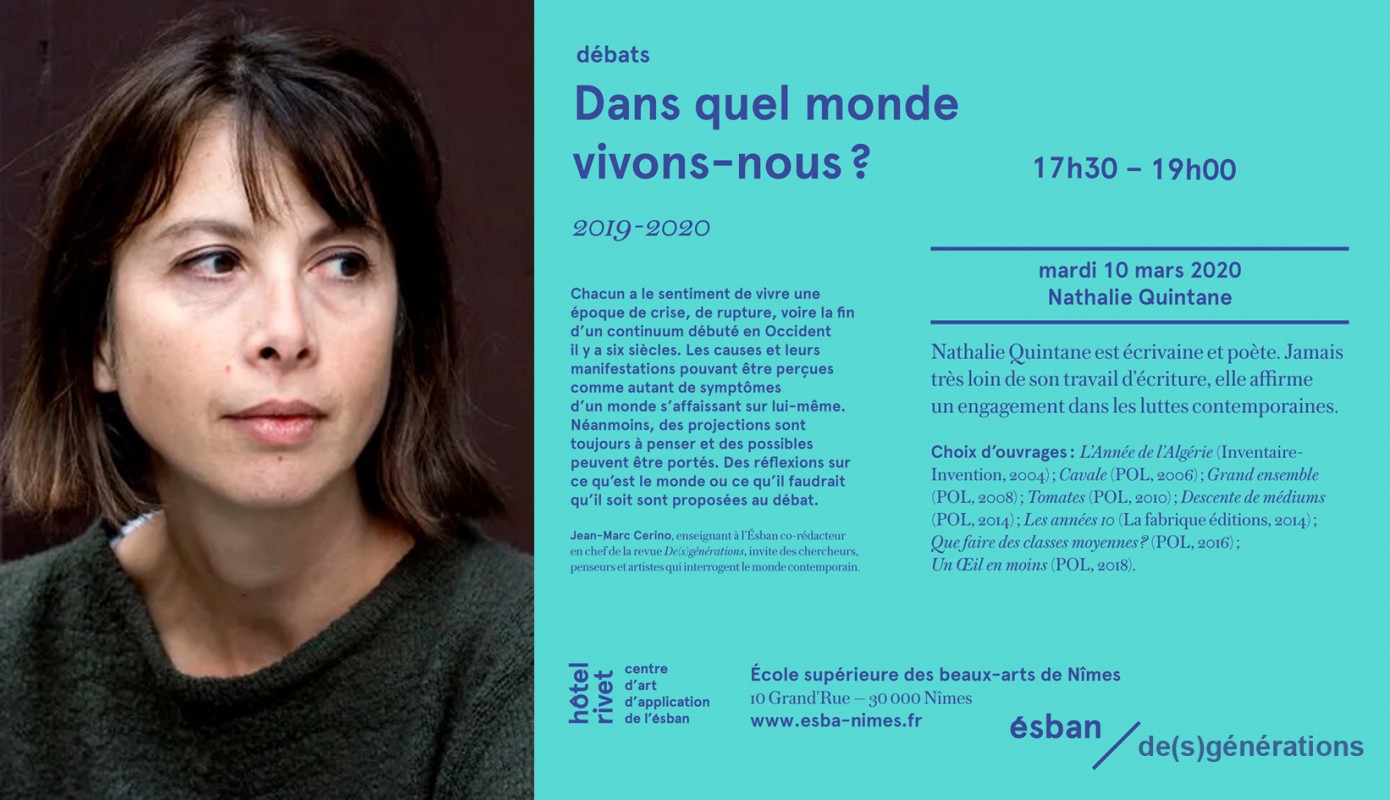 Rencontre avec Nathalie Quintane et Jean-Marc Cerino à l’ESBAN de Nîmes dans le cadre du cycle Dans quel monde vivons-nous ?