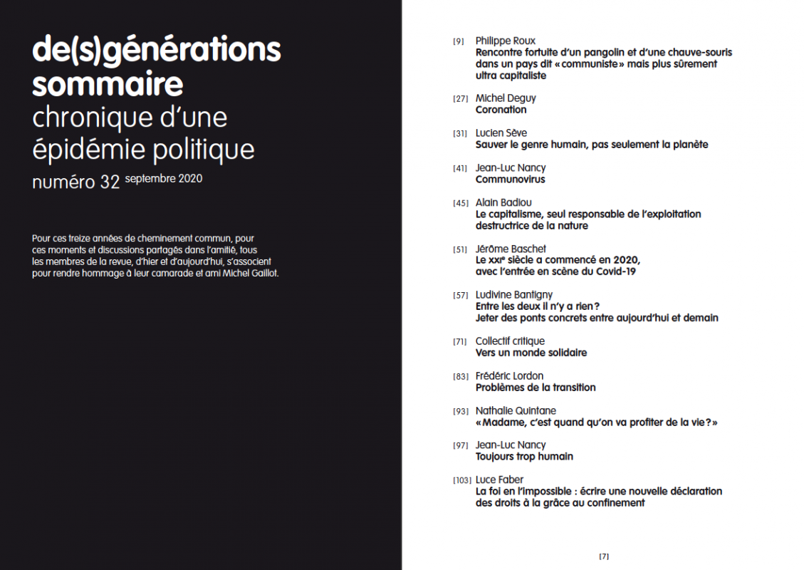 Alain Badiou, Ludivine Bantigny, Jérôme Baschet, Collectif critique, Michel Deguy, Luce Faber, Frédéric Lordon, Jean-Luc Nancy, Nathalie Quintane, Lucien Sève.