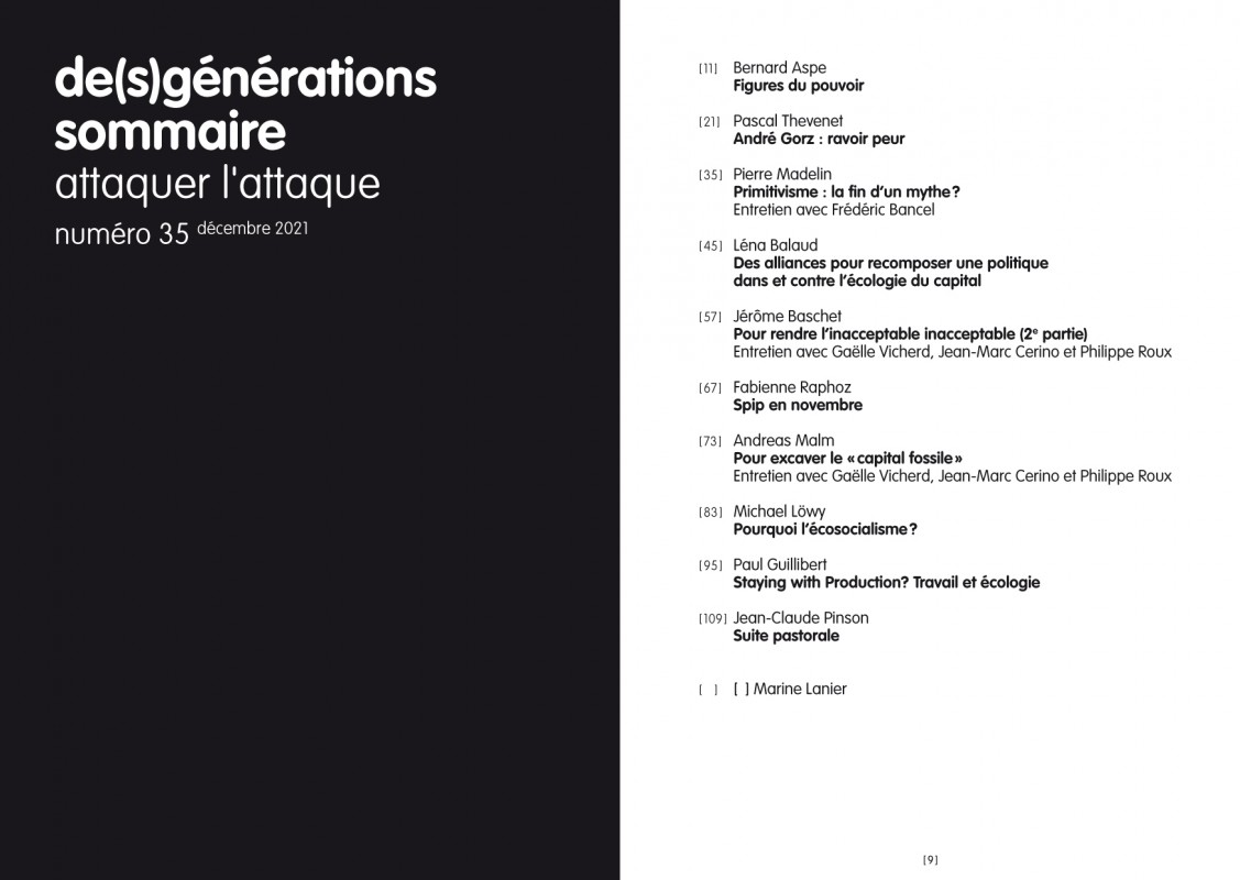 Bernard Aspe, Léna Balaud, Jérôme Baschet, Paul Guillibert, Marine Lanier, Michael Löwy, Pierre Madelin, Andreas Malm, Jean-Claude Pinson , Fabienne Raphoz