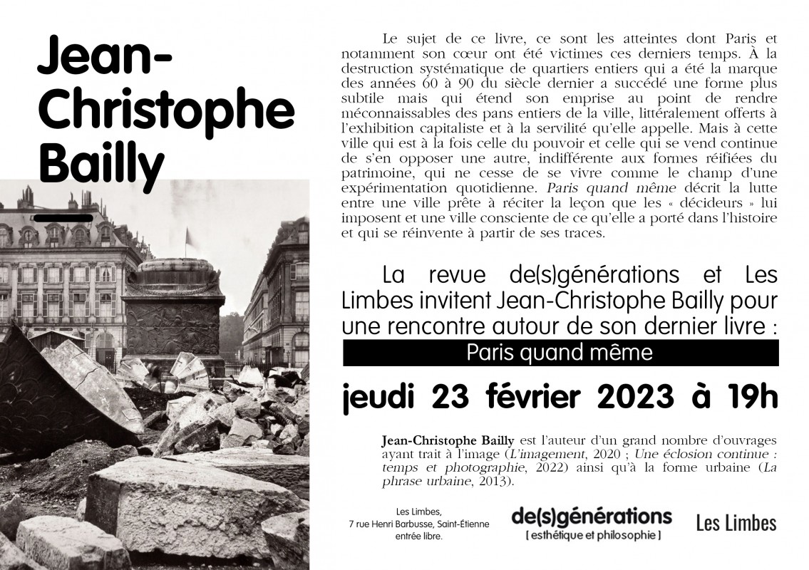 Rencontre avec Jean-Christophe Bailly, en partenariat avec Les Limbes.