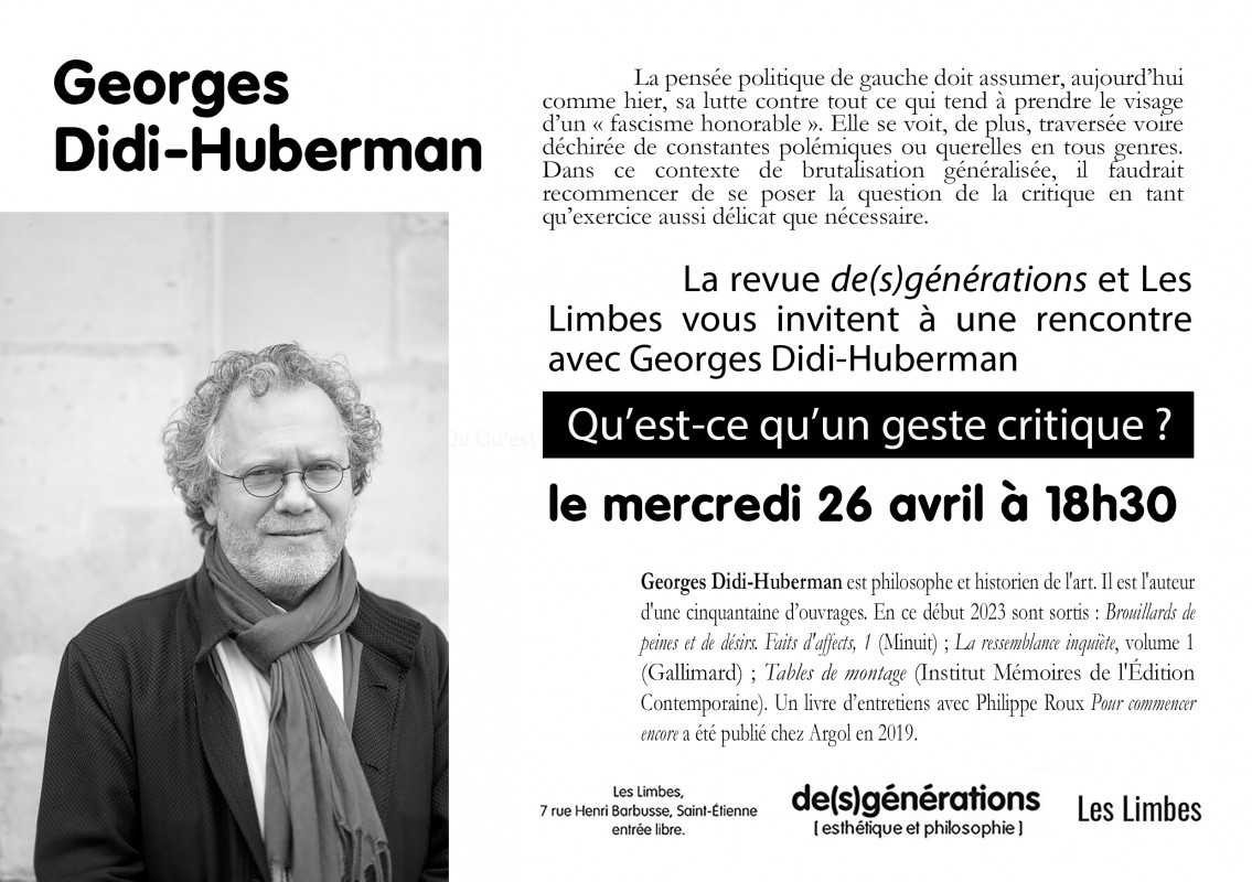 Rencontre avec Georges Didi-Huberman, en partenariat avec Les Limbes.