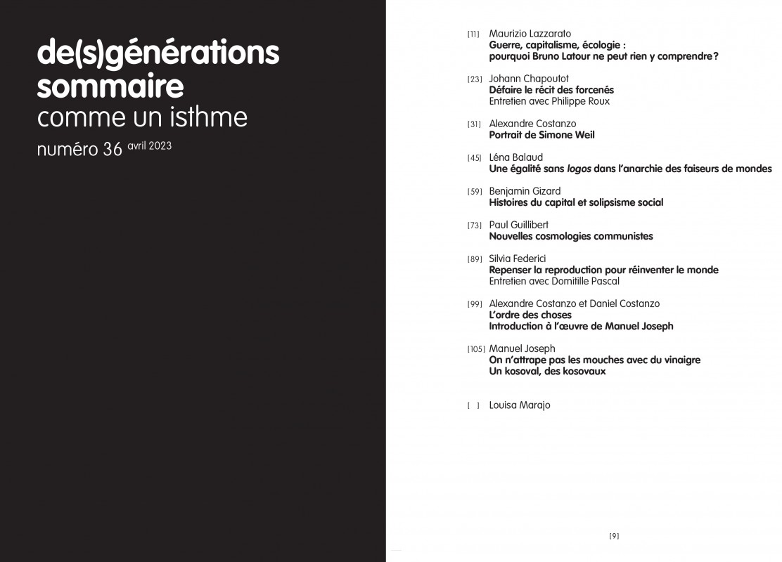 Léna Balaud, Johann Chapoutot, Alexandre Costanzo, Daniel Costanzo, Silvia Federici, Benjamin Gizard, Paul Guillibert, Manuel Joseph, Maurizio Lazzarato, Louisa Marajo