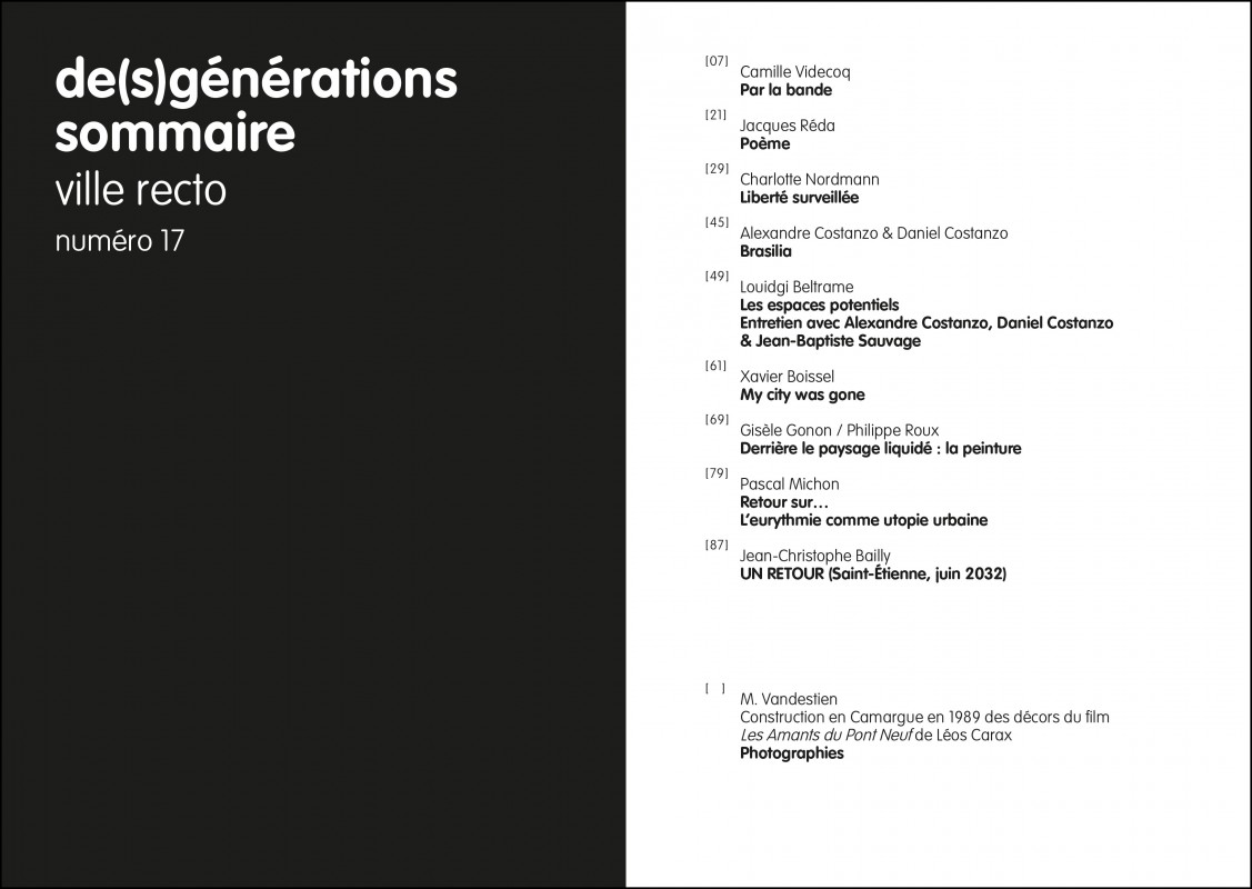 Jean-Christophe Bailly, Louidgi Beltrame, Xavier Boissel, Gisèle Gonon, Alexandre Costanzo & Daniel Costanzo, Pascal Michon, Charlotte Nordmann, Jacques Réda, Philippe Roux, M. Vandestien, Camille Videcoq