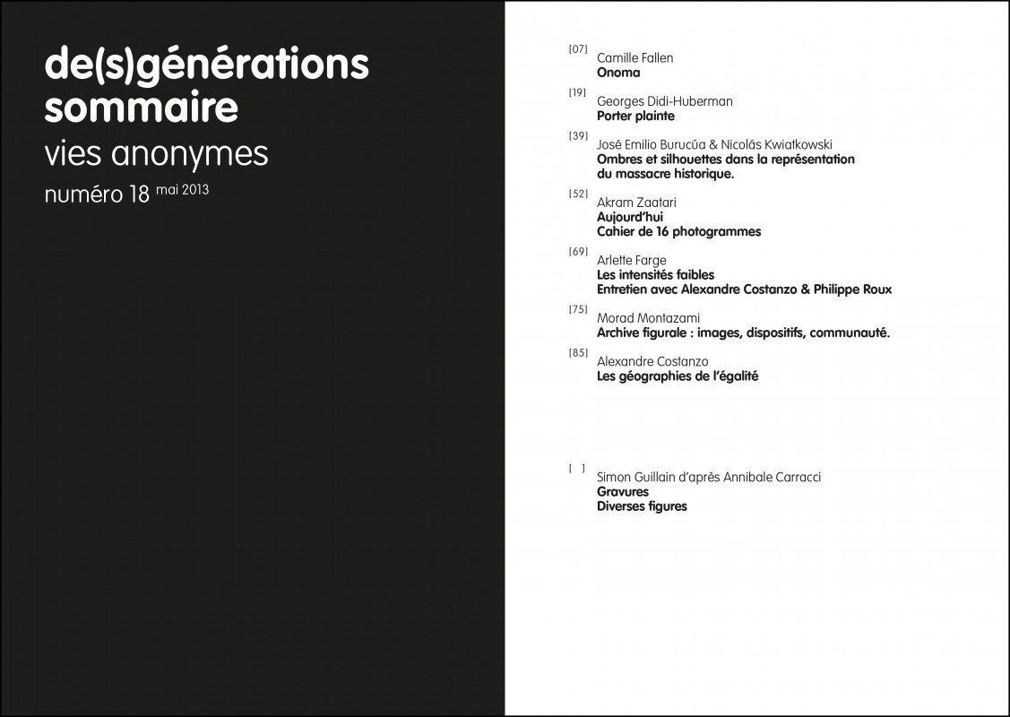 José Emilio Burucúa, Alexandre Costanzo, Georges Didi-Huberman, Camille Fallen, Arlette Farge, Nicolás Kwiatkowski, Morad Montazami, Akram Zaatari