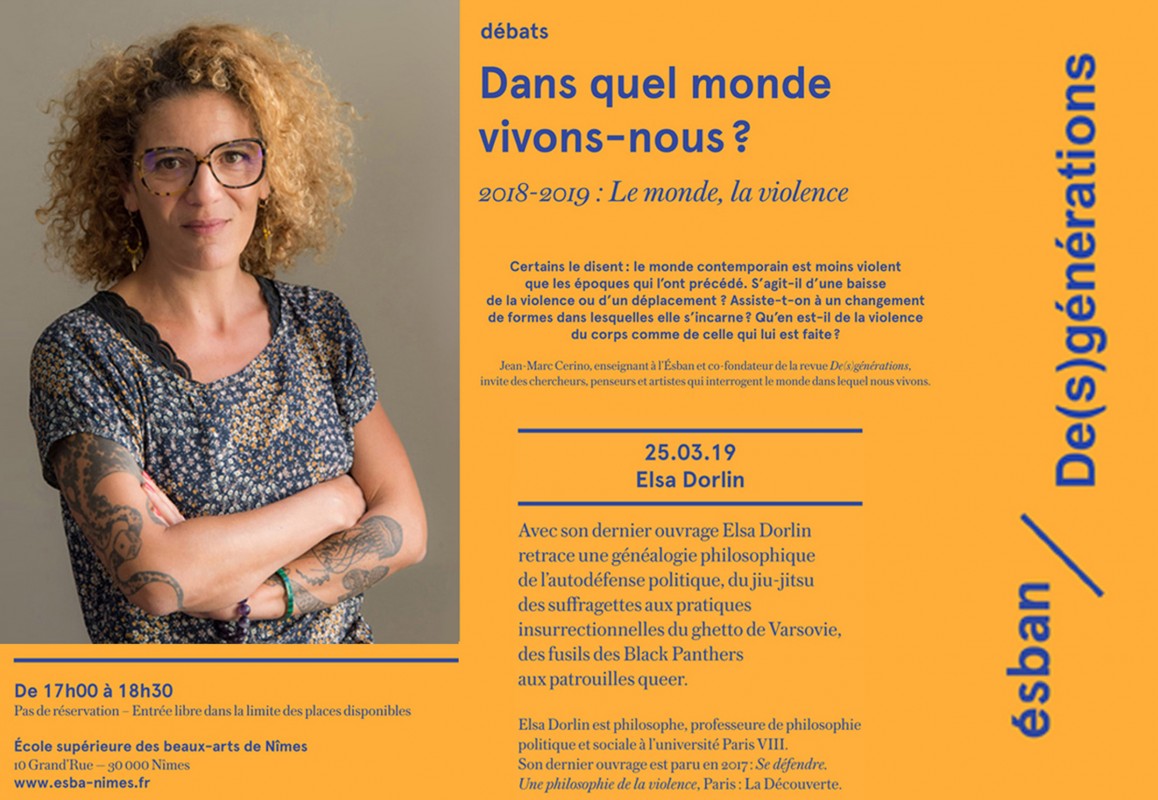Rencontre avec Elsa Dorlin et Jean-Marc Cerino à l’ESBAN de Nîmes dans le cadre du cycle Dans quel monde vivons-nous ?