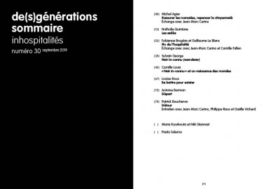 Les articles regroupent des informations sur les auteur.es des différents numéros de de(s)générations ainsi que sur les événements liés à la revue et aux membres de son comité de rédaction.