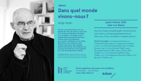 Rencontre avec Jean-Luc Nancy et Jean-Marc Cerino à l’ESBAN de Nîmes dans le cadre du cycle Dans quel monde vivons-nous ?