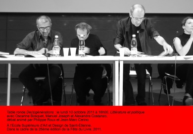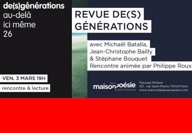 Rencontre de revues de création. Table ronde avec Jean-Marie Gleize (Nioques), Justin Delareux (Pli), Philippe Roux (De(s)générations), suivie de lectures de Sarah Kéryna, Justin Delareux.
