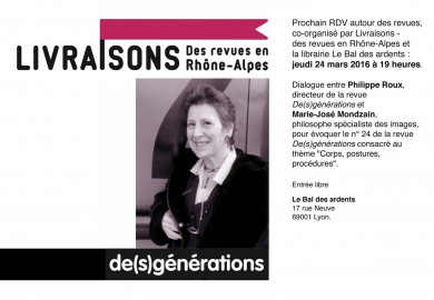 Dialogue avec Marie-José Mondzain, en partenariat avec le collectif Livraisons et la librairie Bal des Ardents.