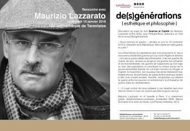 Discussion au sujet du livre Guerres et capital de Maurizio Lazzarato et Eric Alliez, Médiathèque de Tarentaize, Saint-Étienne.