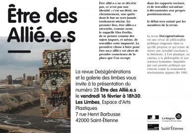 La revue De(s)générations et la galerie Les Limbes vous invitent à la présentation du numéro 28 Être des Allié.e.s.