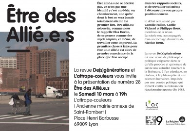 Rencontre autour de la présentation du numéro 28 Être des Allié.e.s. en partenariat avec L’Attrape-Couleurs, Lyon.